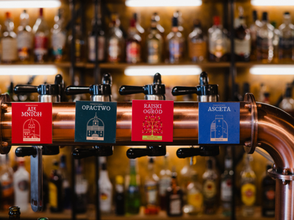 Cistercian Order At Browar Restauracyjny Podklasztorze we brew beer based on malt, yeast and hops of the highest quality. It is not pasteurized or filtered, and owes its unique taste to maturing in medieval cellars.
