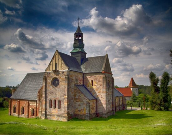 The most precious relic is the church of St. Thomas of Canterbury, also known as Thomas Becket, the archbishop of Canterbury – three-nave basilica with a transept (transverse nave) preserved in pristine condition, with beautiful Romanesque portal and rosette as well as baroque and rococo furnishing. One can also admire the eastern wing of the monastery, the only one that remained out of three. There is a museum now, in the preserved chapterhouse, which was used by the monks as a room for meetings. Gothic cloisters also remained.
